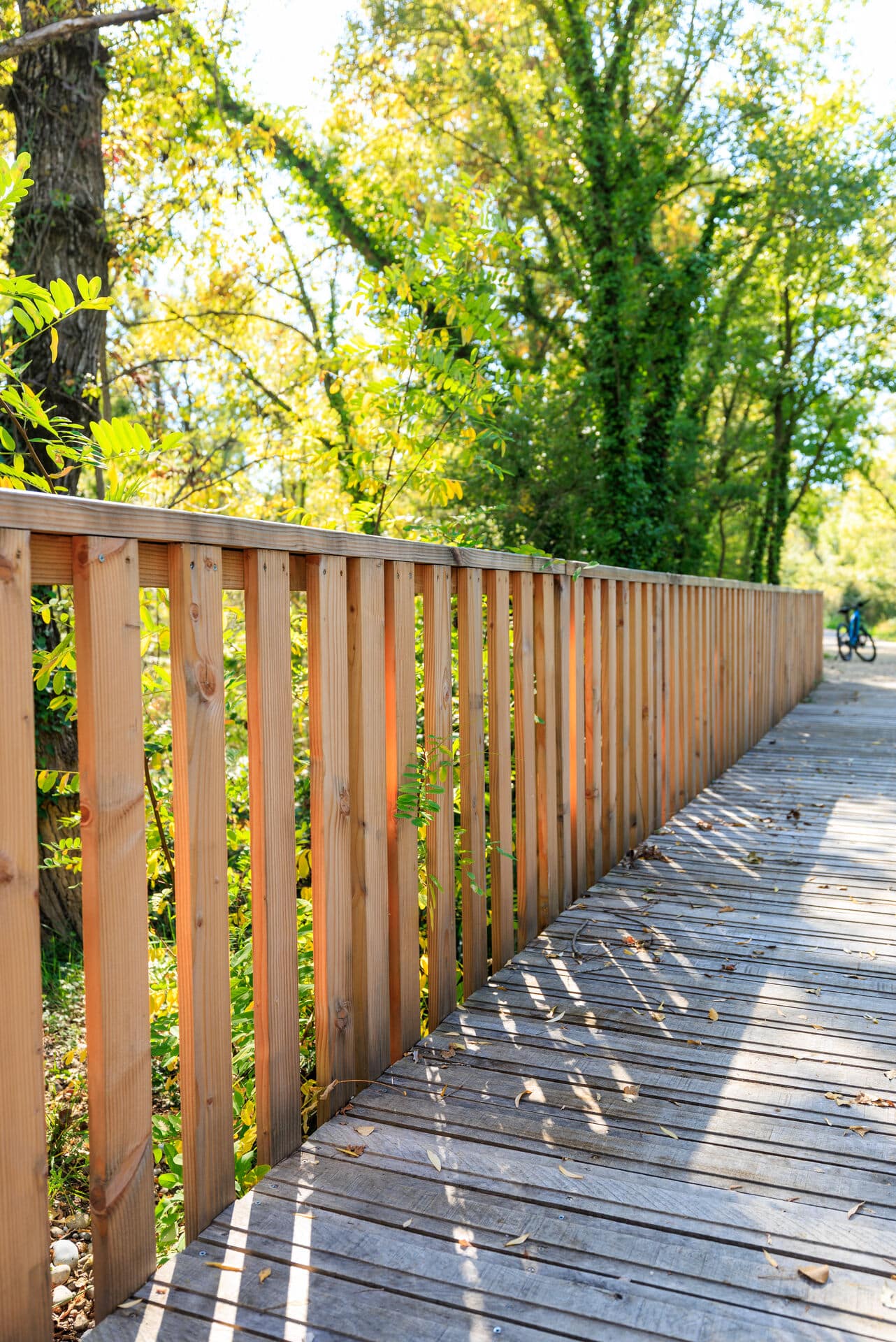 Plusieurs passerelles en bois et ponton vous emmènent vers le point de vue sur le massif du petit Luberon, avant de poursuivre le long de la ligne TGV.
